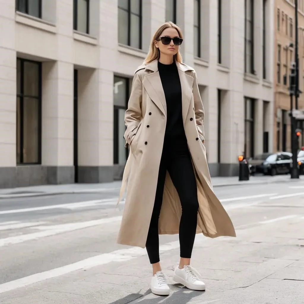 - Внедрение кед в сочетание с классическими предметами, такими как пальто или тренч․
