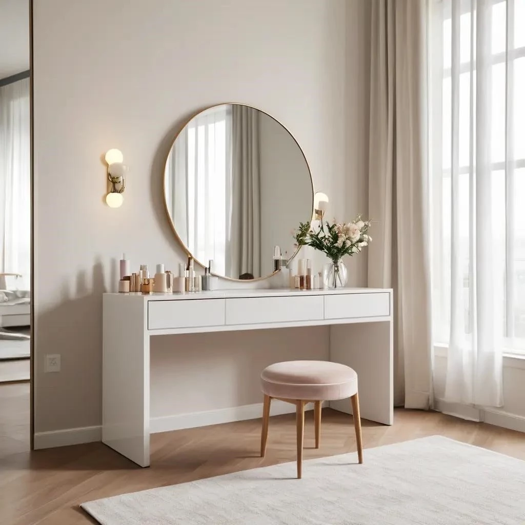 Правильно организованная бьюти-зона превращает спальню в многофункциональное и эстетичное пространство. Современный стиль интерьера предполагает‚ что туалетный столик становится не просто мебелью‚ а ключевым инструментом для поддержания порядка и гармонии. Грамотная планировка позволяет вписать дамский столик даже в ограниченные габариты‚ обеспечивая четкое зонирование помещения. Широкая столешница и вместительные ящики помогают скрыть косметика‚ аксессуары и украшения от посторонних глаз. Традиционное трюмо или лаконичная консоль эффективно заменяют громоздкий комод‚ освобождая визуальное пространство комнаты. Здесь каждая деталь работает на функциональность: от высоты сиденья до расположения розеток. Продуманный дизайн учитывает‚ что ежедневный уход за лицом и макияж требуют тишины и личного комфорта. Владелица получает полноценное рабочее место‚ где утренние ритуалы проходят без лишней суеты. В итоге интерьер обретает законченный вид‚ гармонично сочетая в себе практическую пользу и уют.
